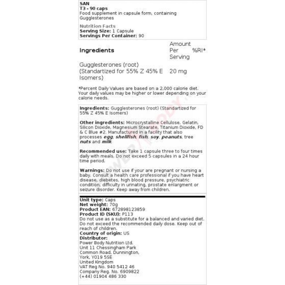 Dosagem (médica) 25 mg de guggulsteronas três vezes por dia