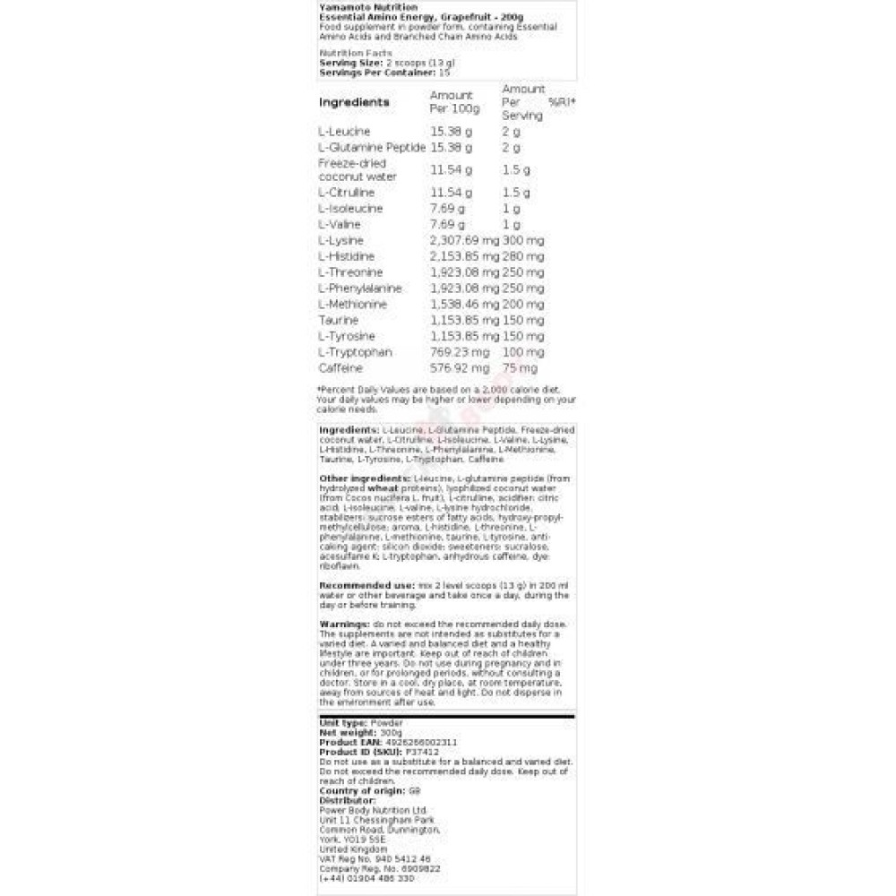 | Nome comercial | Vários, consoante a marca e a fórmula (por exemplo, AminoX, Optimum Nutrition Essential Amino Energy) |